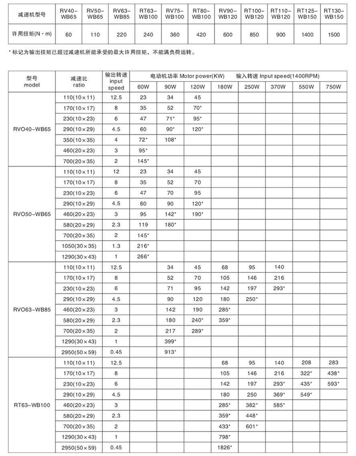 RV和WB雙級系列微擺組合減速機(jī)