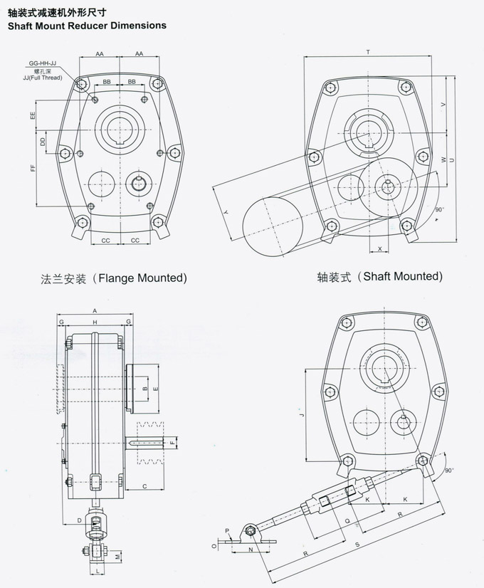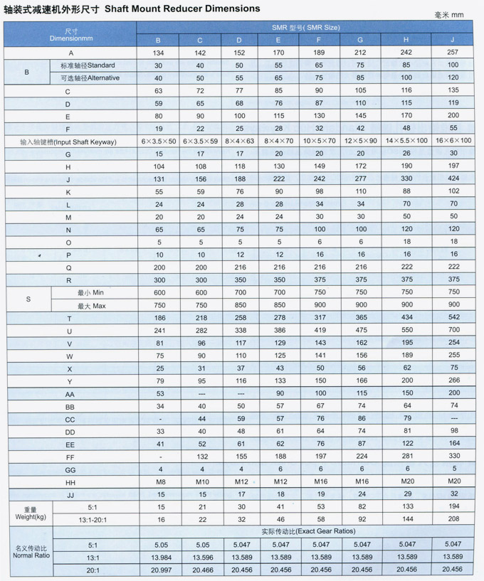 SMR公制軸裝式斜齒輪減速機外形尺寸