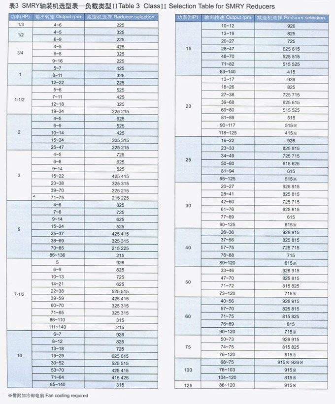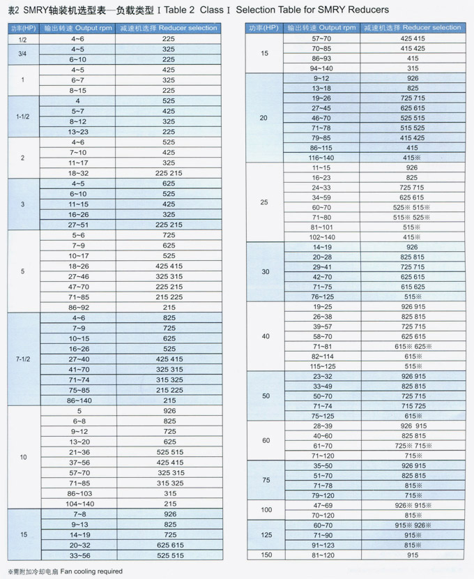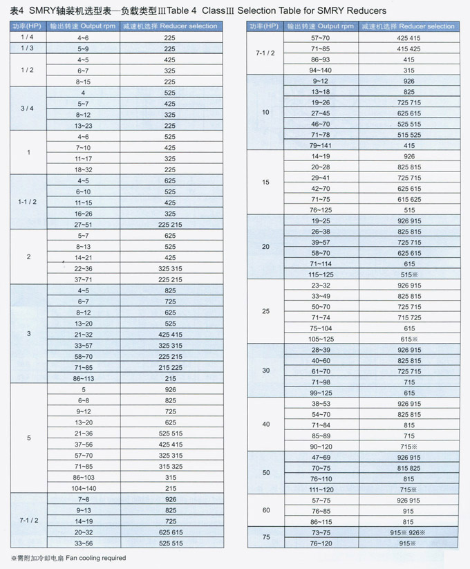 SMRY英制軸裝式斜齒輪減速機(jī)額定功率