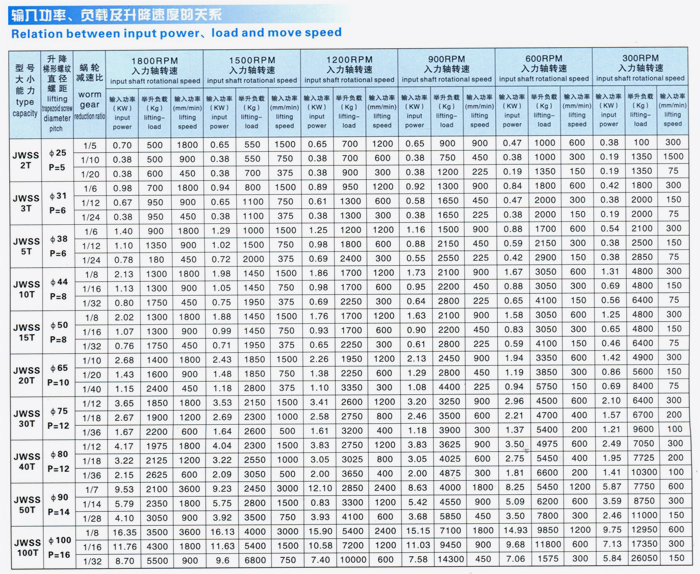JWSS輸入功率、負載及提升速度的關系