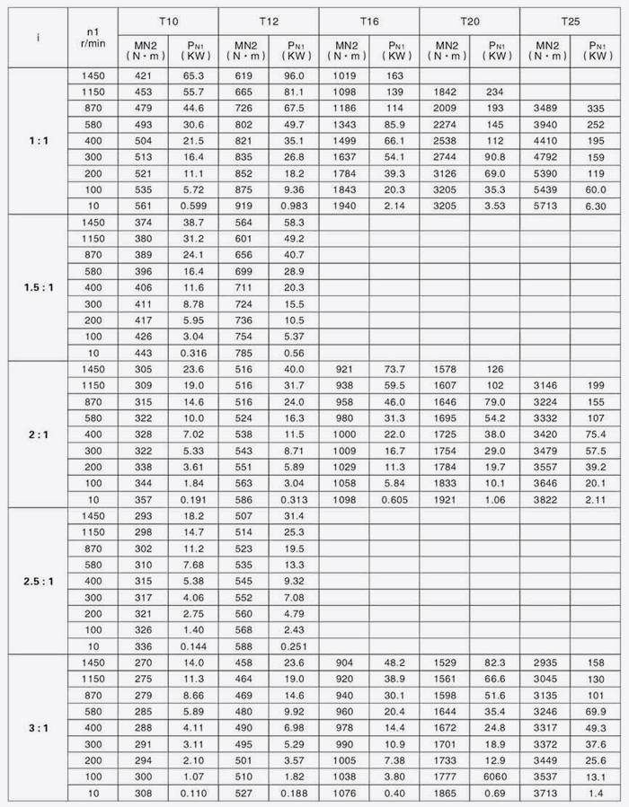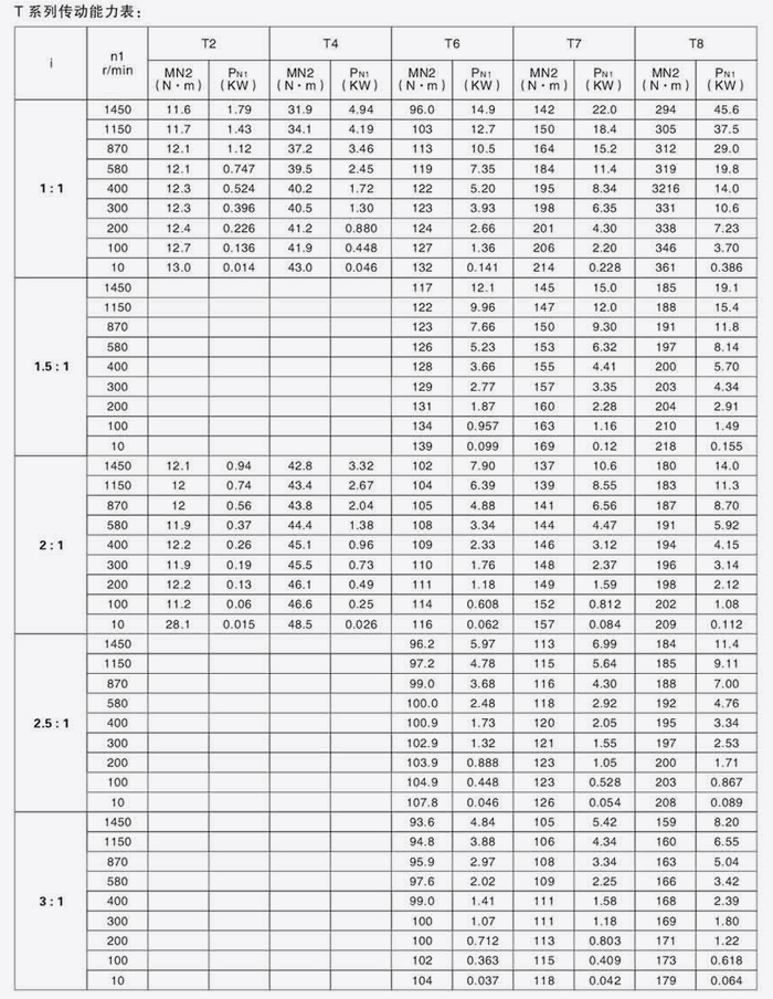 T系列螺旋傘齒輪轉(zhuǎn)向箱傳動(dòng)能力表